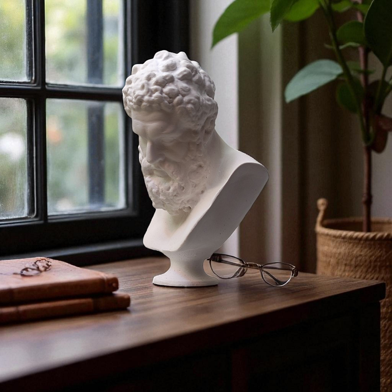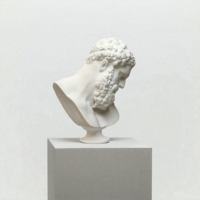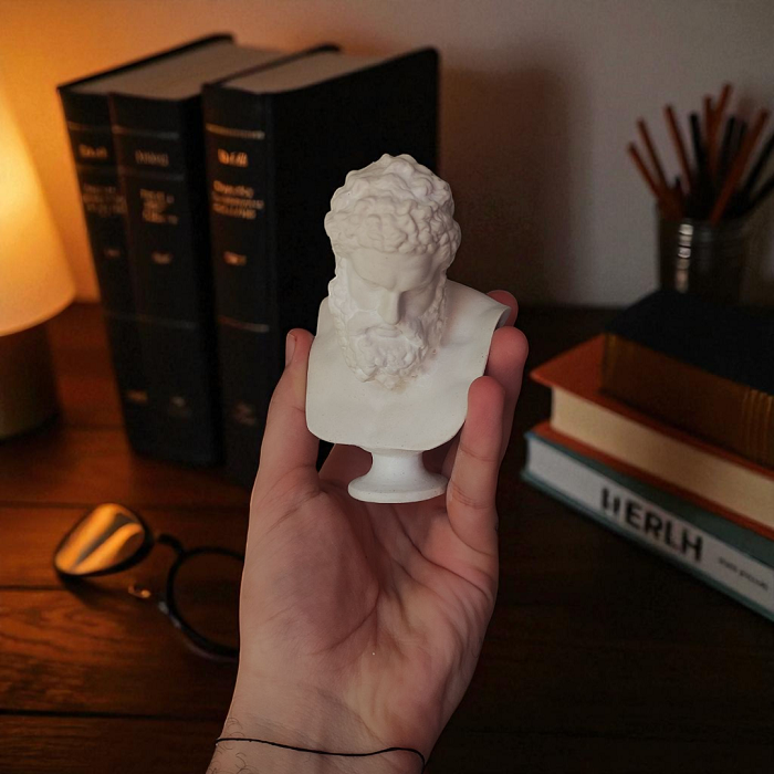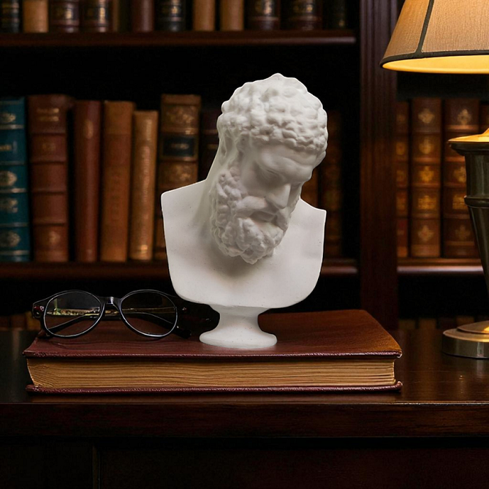 این مجسمه بازآفرینی یکی از معروفترین آثار دنیای کلاسیک است: هرکول فارنزه، قهرمان افسانهای اسطورههای یونان. سردیس هرکول با ظرافتی خاص طراحی شده و شکوه و قدرت این پهلوان را در قالبی کوچک و هنری به نمایش میگذارد.