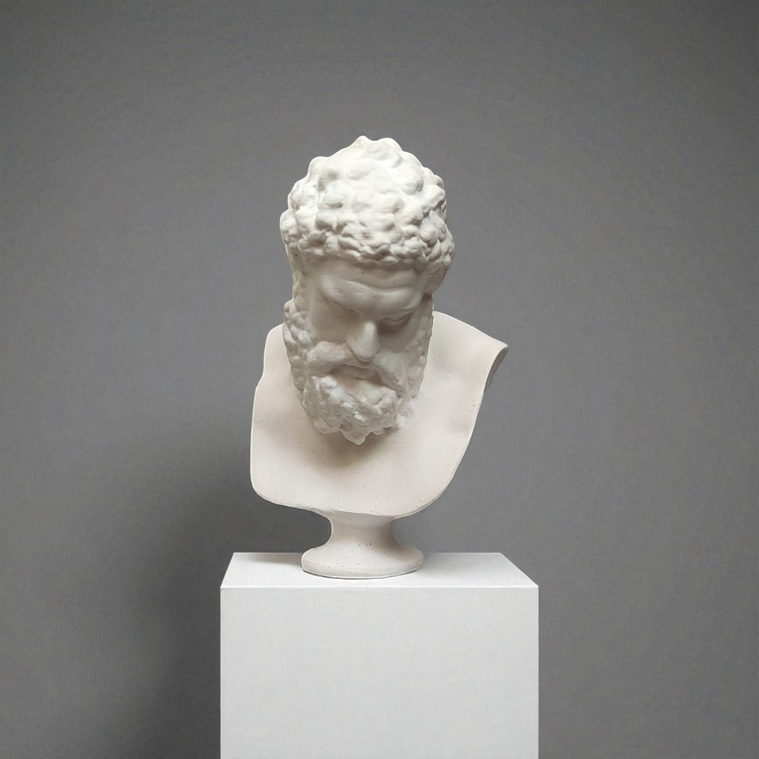 اثر اصلی، تندیسی عظیم از دوران رومی است که هرکول را پس از انجام دوازده کار بزرگش نشان میدهد؛ نمادی از قدرت، صبر و قهرمانی جاودانه. در این سردیس نیز همان حس عظمت و استواری در خطوط چهره و جزئیات ظریف بازآفرینی شده است.