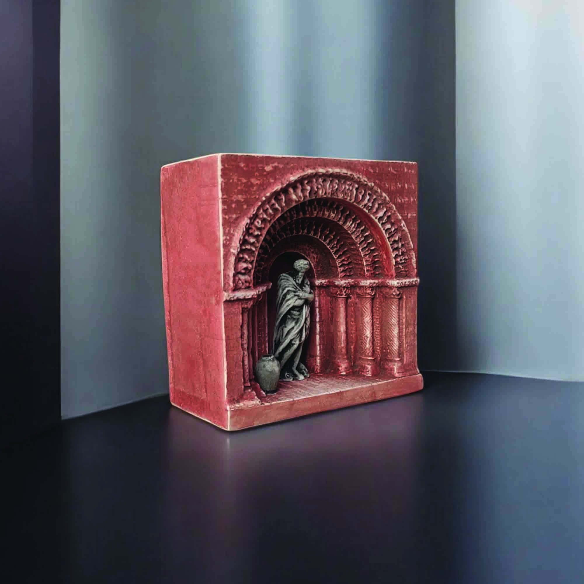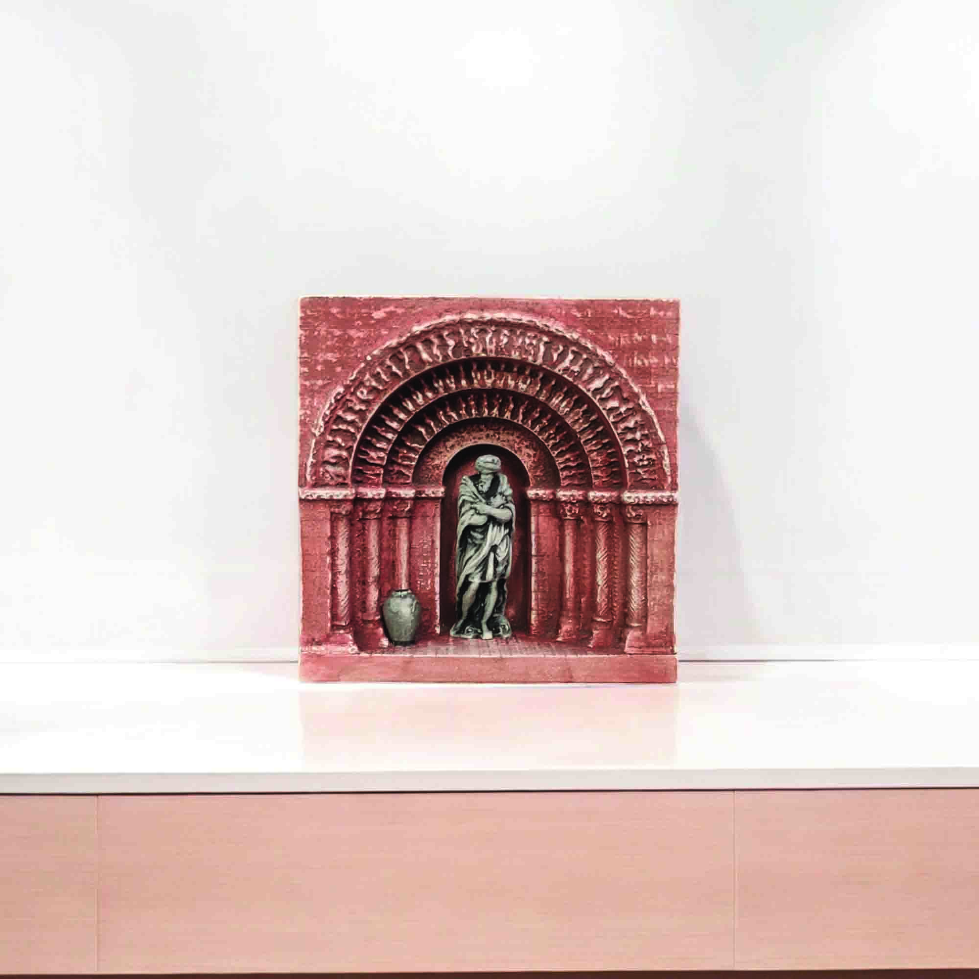 مجسمهی طاق رُمانِسک الهامگرفته از معماری باشکوه اروپای قرون وسطی است؛ جایی که طاقهای نیمدایرهای، نشانهای از استواری، نظم و شکوه بناها بودند. این اثر با ظرافتی خاص طراحی شده تا زیبایی تاریخی این سبک را در قالبی کوچک و هنری به نمایش بگذارد.